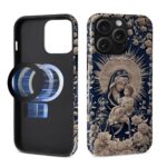 iPhone 14 Pro用のケース、MagSafe対応の光沢ソフトシリコンとハードPCの2イン1設計。傷防止と耐衝撃機能を備え、星月夜と聖母マリア、赤ちゃんのデザイン。男女問わず使用可能。