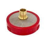 オーミヤの円盤ストレーナー、タケノコ部φ25(1インチ)。円盤直径12cmで、動噴や高圧洗浄機に適した高強度の真鍮製。ステンレスメッシュ仕様で耐久性も抜群。