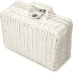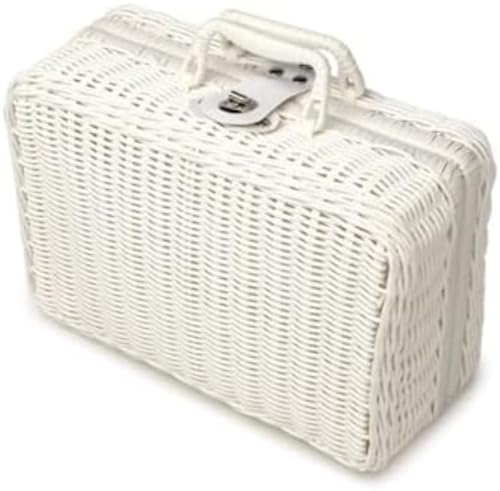 Vinebeautifulのかごバッグは、トランク型のピクニック用収納ボックスです。籐やラタン素材で作られ、鍵付きでおもちゃや小物の収納に最適です。ホワイトカラーでおしゃれなデザイン。