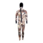 ウエットスーツ メンズ 5mm フルスーツ。サーフィンやダイビングに最適なネオプレン素材。伸縮性があり、日焼け防止やUVカット効果もあり、保温性能にも優れています。ア-迷彩グレーのデザインでマリンスポーツを楽しむのに適しています。