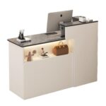Bxzzuisの受付カウンターは、鍵付きの引き出しがあり、小型で使いやすいデザインです。美容室やアパレルショップに最適なサイズ(100*50*100cm)、ホワイトカラー(左隅)。