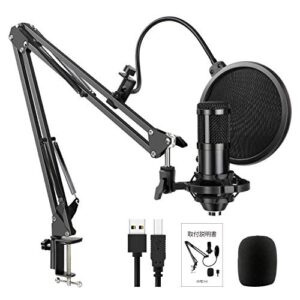 USBマイク コンデンサーマイク PC 単一指向性 マイクセット マイクスタンド ゲーミングマイク ポップガード付き アームスタンド付き 録音 生放送 YOUTUBE ゲーム実況 配信用マイク Windows Mac PS4対応 (マイクセット)