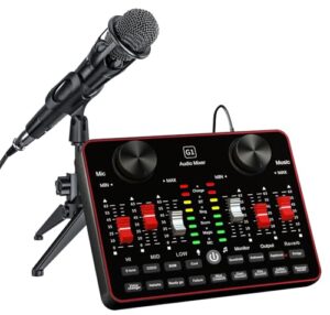 ポッドキャストマイクバンドル、ライブサウンドボードオーディオミキサー、ポッドキャスト機器バンドル、3.5mmコンデンサーストリーミングマイク付き PC/電話ライブストリーミング歌唱ゲーム、ボイスチェンジャー、ノイズ除去用