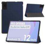 アイリスオーヤマのLUCA TM12E2W74-AZ1Bは、12インチAndroidタブレット用の超薄型三つ折ケース。軽量でマグネット内蔵、擦り傷・落下防止の全面保護を提供します。カラーはブルー。