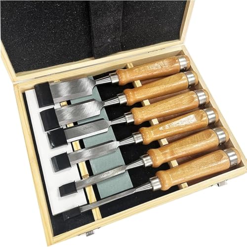 Joxoilso DIY 木工用ノミツール 木工旋盤工具、木箱セット、木工ノミ、木工彫刻刀 両面砥石 修正石 ドリルビット付き 無垢材ノミ 頑丈なフラットノミ 鋭いプロ仕様の木工ツールセット (6PCS,ビッグプナ)の製品情報