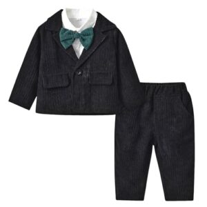 子供服 スーツ 3点セット ブレザー 長袖シャツ ロングパンツ フォーマル 男の子スーツ 子ども おしゃれ ブレザー キッズ服 ベビー 赤ちゃん 紳士服 おしゃれ 可愛い 入園式 卒園式 七五三 結婚式 発表会 演奏会 お受験 80-130cm(ブラック,100)