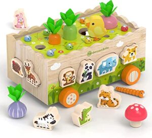 木玩社 木のおもちゃ ニンジン モンテッソーリ 形合わせ 知育玩具 指先レッスンボックス 3 4 5 6+歳 磁石芋虫 捕りゲーム 男の子 女の子 農場ニンジン抜き 動物・大小・カラー認識 子供の日 誕生日お祝い クリスマスプレゼント…