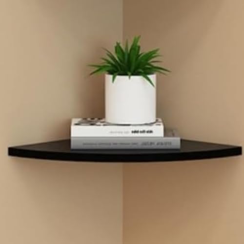 Ragoj ウォールシェルフ コーナーラック 木製壁棚 三角 コーナー用 壁掛けラック スタイリッシュで美しい 北欧 インテリア 木製 扇形シェルフ簡単組立 壁に付けられる棚 壁収納 家具収納 飾り棚 書斎 (25cm,ブラック2つです)の高価買取