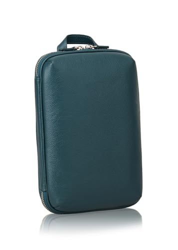 ガジェットポーチは、本革製で耐久性に優れ、PC周辺機器をスマートに収納できます。ティールブルーの色合いがスタイリッシュで、持ち運びにも便利なレザーケースです。