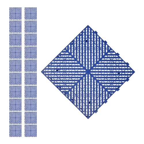 Fkstyleのガレージフロアタイルは、耐荷重10tの高強度PP製で、業務用にも適した頑丈な床材です。40cm角のパネルが20枚組で、傷防止機能も備えています。用途は車庫、トラック、整備工場、ジムなど。カラーはブルーです。