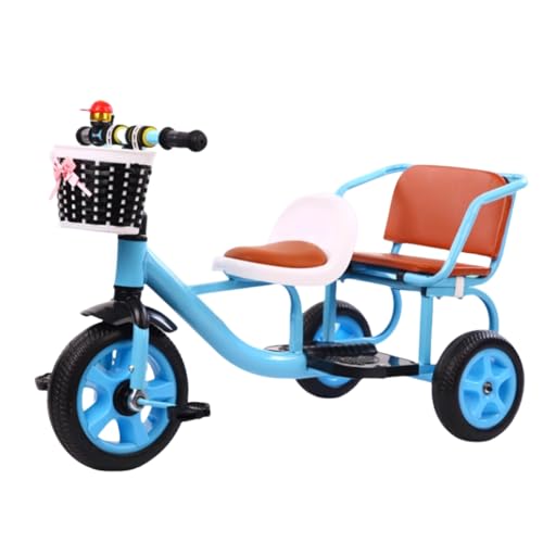 Bxzzuis 子供用三輪車、キッズダブルシート三輪車、タンデム自転車、ベビーカー、軽量、調節可能なシート、収納バスケットとベル付き、横転防止、組み立て簡単、乗用玩具、車用二人乗りベビーカー、屋内外での使用に最適、誕生日プレゼント、2~6歳 (ライトブルー) [並行輸入品]の高価買取