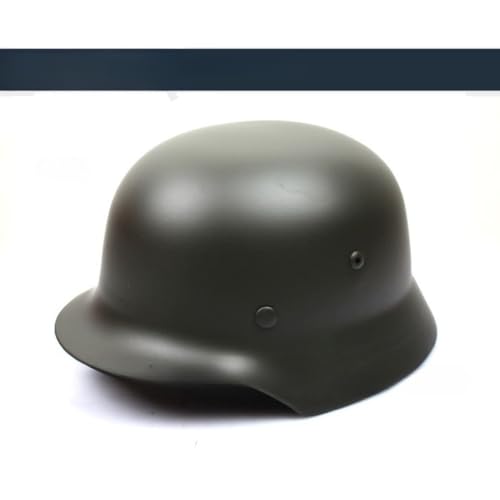 NexPonのレザーライナー&チンストラップ付き再現WW2ドイツ軍M35ヘルメットは、全鋼製で映画やテレビの小道具として最適なグレーグリーンカラーです。