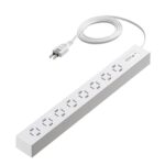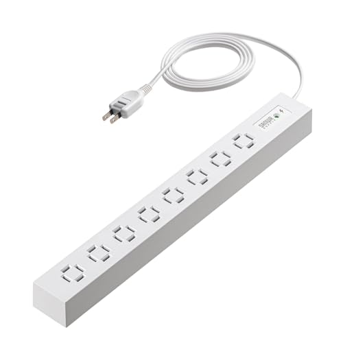 サンワダイレクトの電源タップAC 8個口は、1.5mの長さで雷ガード機能を搭載。絶縁キャップ付きで安全性が高く、スイングプラグとスリムデザインが特徴のホワイトモデルです。