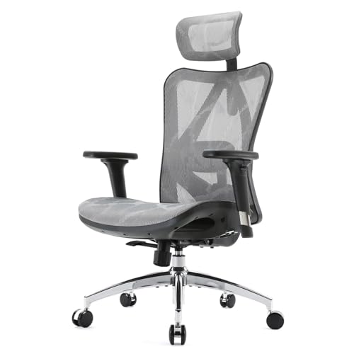 SIHOO M57オフィスチェアは人間工学に基づき設計され、S字型の立体背もたれ、3Dアームレスト、可動式ランバーサポートを備えています。126°リクライニングと2Dヘッドレストで快適性を追求したグレーのデスクチェアです。