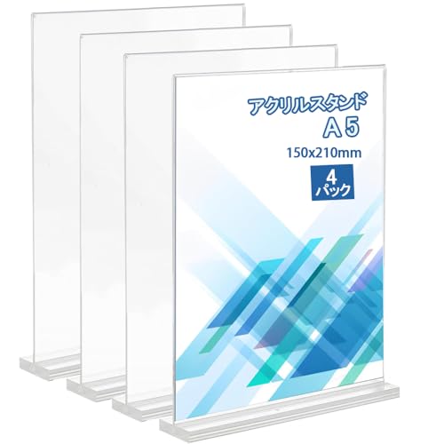 アクリルスタンド A5縦4個入は、透明度が高く丈夫なアクリル素材で作られ、絵や写真を美しく展示できます。スタンドは安定しており、デスクやコレクションに最適です。