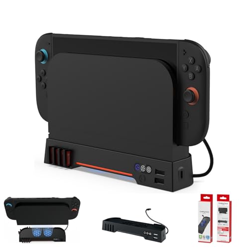 BUPVIOOD Switch 2用冷却ドック。3段階風量調整、静音設計で熱対策。ゲームカード8枚収納、USBポート拡張、RGBライト付き。