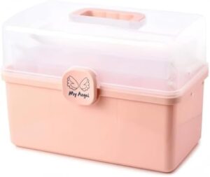[Vzfv] 救急箱 薬箱 大容量 3段折りたたみ おしゃれ 可愛い 家庭用 防災 応急処置 薬収納 仕切り付き 取っ手付き 多機能 収納ボックス 小物入れ 工具箱 裁縫箱 おもちゃ箱 釣具 (ピンク, XL) (XX-Large,粉です)