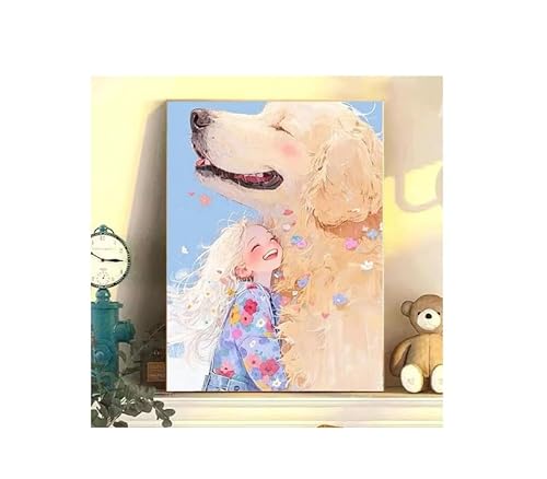 DIY 数字油絵キット、塗り絵パズル。水海風景の大人向けアート。絵具付、サイズ30x40cm、フレームなし。犬好きにおすすめ、推し活にも。