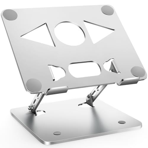 折り畳み式ノートパソコンスタンド。無段階高さ・角度調整可能で、安定性抜群。人間工学設計により猫背や肩こり解消。放熱対策、デスク整理に最適。15.6インチ以下のノートPCやタブレットに対応、滑り止め付き。