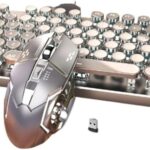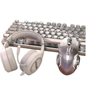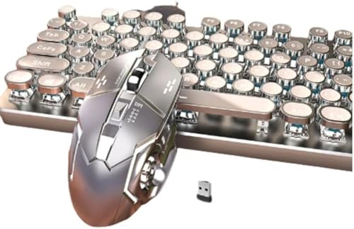 AZIEBAYのメカニカルゲーミングキーボードとマウスセットは、ヴィンテージスチームパンクデザインで、操作しやすいLEDバックライト付き。有線USB接続、メタルプレートと丸型キーが特徴です。