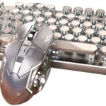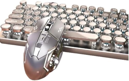 AZIEBAYのメカニカルゲーミングキーボード&マウスセットは、レトロなスチームパンクデザインで104キーのLEDバックライト、ブルースイッチを搭載し、高耐久性。ピンクカラーで快適操作が可能。