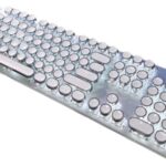 AZIEBAYのメカニカルゲーミングキーボード&マウスセットは、レトロスチームパンクデザイン、104キーのLEDバックライト、高耐久ブルースイッチを搭載したピンクの有線USB接続製品です。