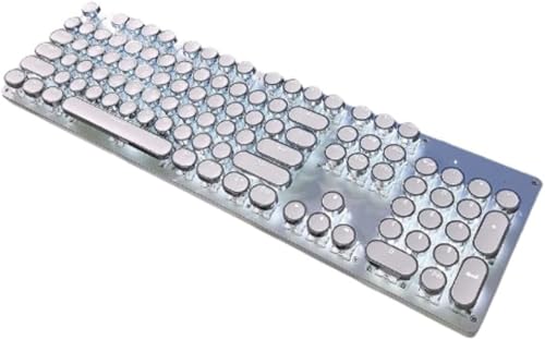 AZIEBAYのメカニカルゲーミングキーボード&マウスセットは、レトロスチームパンクデザインで、104キーのアンチゴースト機能を装備。ブルースイッチ、USB有線接続、LEDバックライト、ホワイトライト、高耐久メタルパネルを特徴としています。