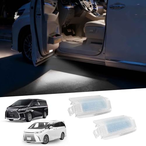 QasimのLEDカーテシランプは、トヨタアルファード40系・30系専用。高輝度で明るさアップ、無極性の純白光。運転席用&助手席用、簡単取付、取付工具付き。2個入りの車用グッズ。