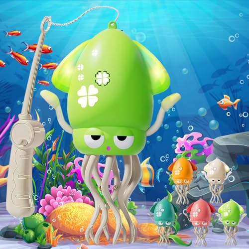 ダンシングイカはLEDライト搭載で自動回避機能を持つおもちゃです。USB充電式で釣り竿付き、子供の興味を引く知育玩具。蛍光グリーンで楽しい遊びを提供し、プレゼントにも最適です。