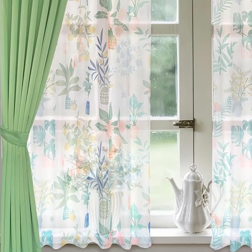 カーテン4枚セット。モダンなボタニカルデザインで、安くてかわいい!北欧風の花とリーフ柄。遮光仕様で洗濯可能。サイズ100×190cmのブルームグリーン色。