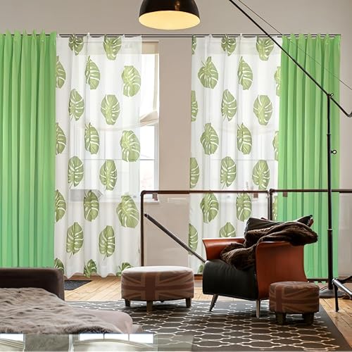 モダンなボタニカルデザインのカーテン4枚セット。安くてかわいい北欧風、遮光機能付き。洗える無地花リーフ柄、サイズ100×135cm。グランリーフグリーンでお部屋をおしゃれに演出。