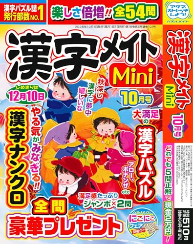 漢字メイト Mini 2025年10月号は、漢字学習をサポートするための雑誌で、様々な漢字の使い方や練習問題が収録されています。子供から大人まで幅広い層におすすめの教材です。