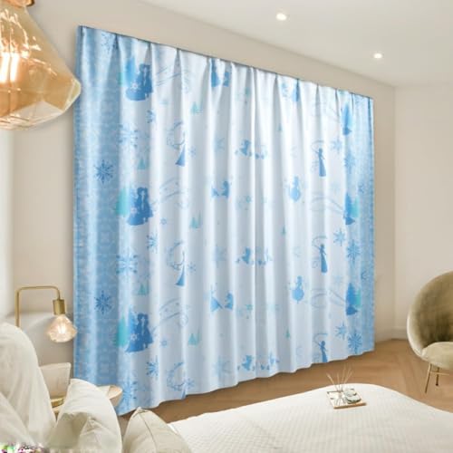 ディズニーのアナと雪の女王デザインの2級遮光カーテン。幅100×丈80cmの2枚組で、エルサのデザインが特徴。遮熱効果、UVカット機能付きで、洗濯も可能です。
