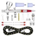 Qtheuteデュアルアクションエアブラシは、流体カップ、クイック取り外しエアキャップ、ノズルを備え、車モデルやDIY絵画、メイクアップ、ネイルアート、ケーキデコレーションに最適で使いやすい。