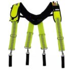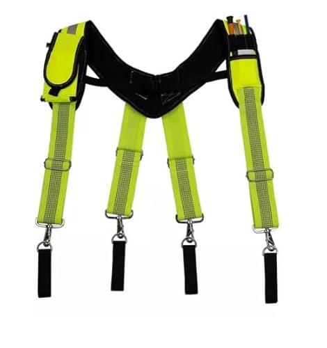 Vilomツールサスペンダーは、建設・大工作業やハイキングに適した工具落下防止ベルトです。調整可能で肩・腰の負担を軽減し、通気性メッシュ素材と多ポケットにより安定性抜群。蛍光グリーンのX型デザイン。