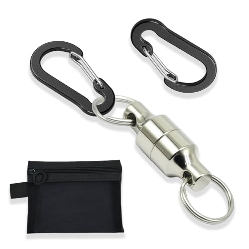 マグネットリリーサーは耐荷重5.7KGで、収納袋付きの強力磁石フック2枚入り。カラビナ付きで落下防止、コンパクトで軽量のため携帯便利。アウトドアやキャンプ、登山、釣りに最適な便利グッズです。