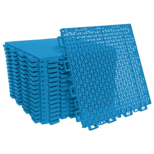 PIKNEW PP材質の耐摩耗性ガレージタイル48枚セット。はめ込み式で水はけが良く、洗える軽量マット。階段滑り止め、工具不要、屋外・屋内兼用。サイズ25*25*1.3cm、カラーはライトブルーです。
