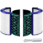 ダイソン空気清浄機用の交換フィルター(型番965432-01)は、HEPAフィルターと活性炭フィルターを備え、多重濾過で集じん・脱臭・花粉対策に優れた性能を持っています。対応機種はHP04、DP04、TP04、TP05、HP05です。
