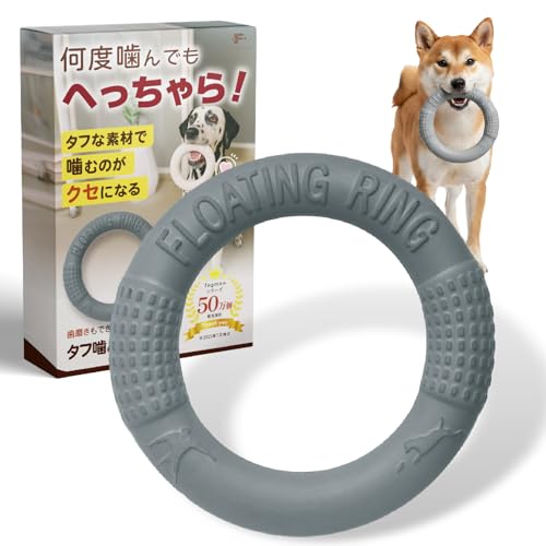 fogmanの犬用おもちゃは、噛む用リング型で軽量、ストレス解消に最適。水に浮くのでプールや海でも楽しめ、耐久性があり丈夫です。色はグレー。