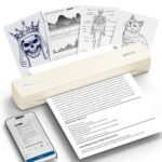POLONOポータブルプリンターD810は、インクレスBluetoothサーマルプリンターで、iOSやAndroid、ノートパソコンに対応。サイズはUSレター(8.5インチx11インチ)で、旅行やオフィス、家庭に最適なライトイエローのデザインです。