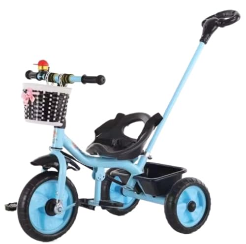 三輪車 はしご付きベビーカー 2〜7歳 子供用自転車 ランニングバイク 組み立て簡単 発泡車輪付き自転車 おもちゃ ギフト 乗用玩具 組み立て簡単 乗り物 コントロールレバー付き アウトドア 屋内外 (ブルー) [並行輸入品] 高価買取中