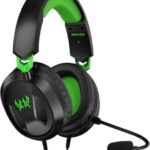 G3100ゲーミングヘッドセットは軽量デザインで、3.5mmジャックの有線タイプ。ノイズリダクションマイク搭載、PS5、PS4、PC、モバイル対応。ブラック/グリーンカラー。