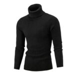 YAYUPLUSのメンズニットタートルネックセーター。シンプルでビジネスにも適したデザイン。冬秋に最適な長袖、フリーサイズ、カラーはブラックです。