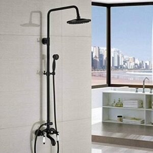 ブラックブラスシャワーセット バスタブ用 デュアルセラミックハンドル蛇口 8スプレーレインヘッド 高圧バスミキサー モダンバスルーム備品 簡単設置