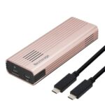 NextorageのUSB3.2 Gen2x2 20Gbps M.2 SSDエンクロージャー。冷却ファン内蔵、PD 100Wパススルー対応で、PS5用ヒートシンクにも適合。各種M.2フォームファクター(2280、2260、2242、2230)に対応。USB C-C PD100Wケーブル付属。