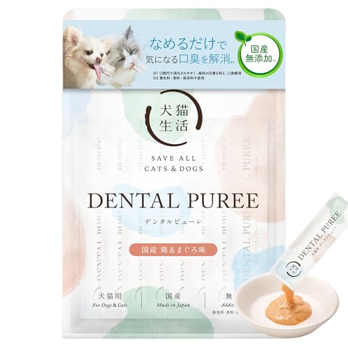 デンタルピューレは犬猫兼用の口腔ケアおやつです。国産の鶏肉&まぐろを使用し、無添加で健康に配慮。獣医師共同開発の設計で、カテキン配合で口臭対策も期待できます。30本入りで便利です。