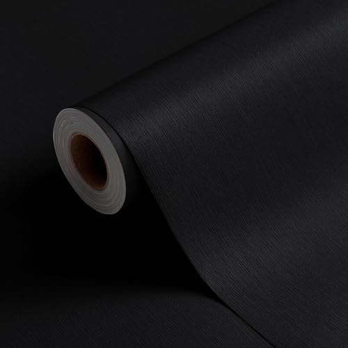 / FUKU MON【厚手】壁紙シール 黒 つや消し 60cm 防水 はがせる壁紙 織物調 おしゃれ 北欧風 リメイクシート マット のり付き 模様替え 防油 防汚 防カビ 耐熱 DIY 天井 布風ビニールクロス 賃貸対応 キッチン (ブラック,幅60cmx 10m)
