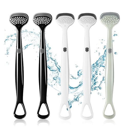 Gegoupの舌ブラシは3効果で口臭ケア。低刺激で舌苔除去、嘔吐反射防止設計。防滑グリップで使いやすく、家庭用・携帯用。グレー/ホワイト/ブラックの3色、5個セット。