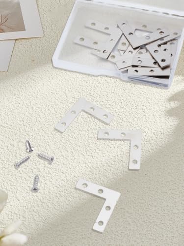 プラチナ鉄製L字型ブラケット20個と、80個入りの201ステンレススチール十字凹型フラットヘッドセルフタッピングねじ。頑丈で、棚や家具、キャビネット、DIYプロジェクトに最適です。