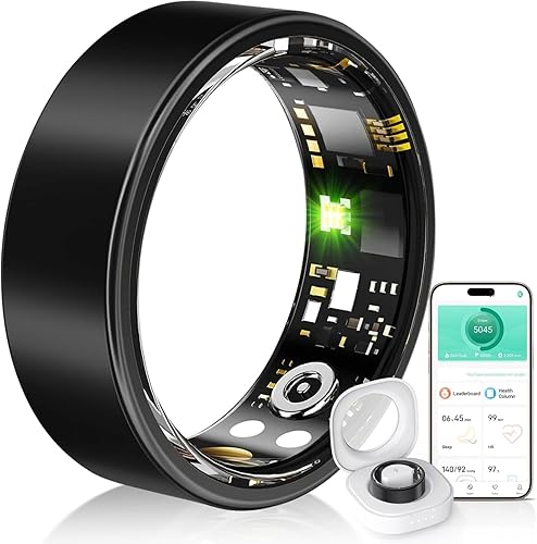 / スマートリング 健康管理 【2025新型スマートウェアラブル】個別充電部 Android/Iphone対応 睡眠管理 スマートリング ヘルスケア 8つの運動モード 3つのデータ計測機能 カロリー 運動距離 歩数計 活動量計 スマートリング 男女兼用 4サイズ IP68防水 USB磁気充電 カメラコントロール コンパクト&超軽量 ギフト (ブラック,11# 内周 (65.00mm))